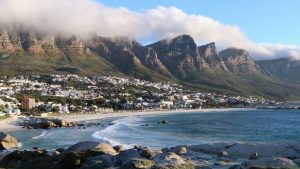Camps Bay  Known for its fine white sand, natural rock swimming pool and views of the Twelve Apostles mountains. Behind the beach, posh seafood restaurants, mellow cafes and cocktail bars with patios overlook the promenade. Nearby, Promenade Mall has boutiques selling fashion and beachwear, while the intimate Theatre on the Bay stages drama, musicals and comedy.