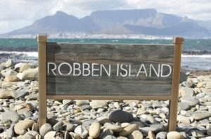 Robben Island Robben Island is an island in Table Bay, 6.9 kilometres west of the coast of Bloubergstrand, Cape Town, South Africa.